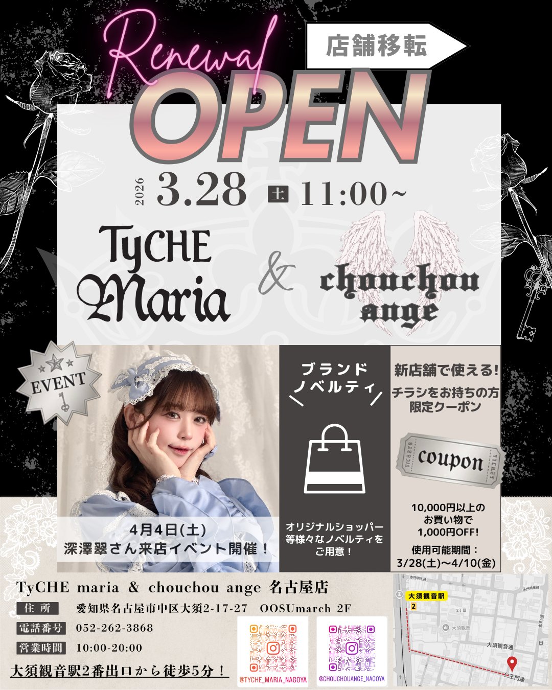 栄NOVA2F営業時間 10:00~20:00 定休日 ビルの定休日に準ずる 電話番号 052-262-3868 -